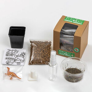 苔(乾燥スナゴケ)・栽培土・栽培容器・水やり用のスプレーボトル・説明書など、栽培に必要な材料をフルパッケージにしたものです。水さえあれば栽培を始められる簡便さから、何も持っていない状態から「苔栽培のはじめの一歩」を踏