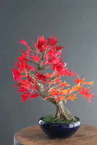 商品番号 b−023−0135 商品説明 和紙、粘土、絵具、針金などを使った全て手作業による人工の盆栽。細部まで丁寧に作りこまれた幹も枝、紅葉した葉一枚いちまい、至近距離から本物と見分けがつかないほどのリアルで、ごつごつとした樹皮