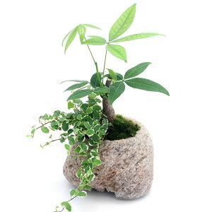 ※冬期は配送時に植物が凍ってしまう恐れがあるため、北海道および積雪が予想される寒冷地域には配送できない可能性がございます。予めご了承ください。 流紋岩の一種「抗火石」を鉢に用いた苔岩盆栽です。株元には苔をふっくらあしら