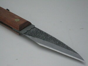 細身で作られているため込み入った枝の中の切断後をきれいにけずることができます。 接ぎ木には使用できません。 高級鋼で通常の鋼より粘りがあり、刃を薄く加工することが出来ます。 そのため、切れ味が良い刃物に仕上がります。 それ