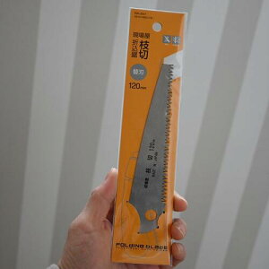 道具は 国産の老舗が 製造 日本製です 折込式の枝切用鋸です。鋏などでは剪定できない枝にご使用ください。 替刃式なので切れ味が落ちた時には刃を交換できます。刃渡り 約120mm 板厚 0.7mm のこぎりと替刃セット もございます