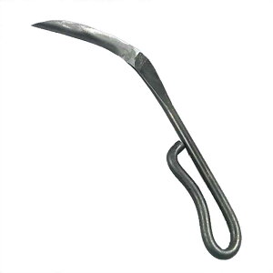 先が丸く、また、刃が直刃に比べて、薄く加工してあります。 それにより、枝を切断する際、直刃に比べ、きれいに切断することができ、その後の加工を出来るだけ少なくするようになります。その後の加工とは切り口をきれいにするため、