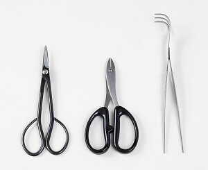 サイズ: 左(剪定鋏):全長 180mm 盆栽ビギナーにオススメ! 商品解説 「盆栽を買ったけど、どんな道具を揃えていいのか分からない」という方にオススメ!剪定ハサミやピンセット、針金切りがセットになっているので届いて直ぐに作業が