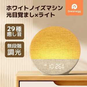 ◆商品名:Dreamegg 目覚まし時計 光 ホワイトノイズマシン 29種癒し音 【日の出&ライト付き&スヌーズ機能&アラーム設定】 音量調整 騒音対策 時間表示部無段階調光 ベッドサイドランプ 調光...