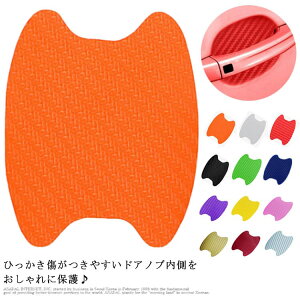 ひっかき傷がつきやすいドアノブ内側をおしゃれに保護♪高級感あるカーボン調ドアハンドルプロテクター。シールタイプなので、貼り付けるだけ装着簡単!柔軟性に優れた素材、曲面にもぴったりフィット♪キズ防止するのはもちろん、既