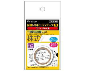 隠したい部分に貼って、後からキレイにはがせる再剥離タイプのコピー・FAX用の目隠しテープです。●白色でテープの影が写りにくいので、コピー・FAX時の一時的な目隠しや、上から文字を書き込んで、一時的な修正に使用