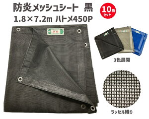 メーカー直送のため代引きでの決済は不可となります。銀行振り込み・コンビニ・クレジット・後払い決済でご購入下さい。 防炎メッシュシート ブラック 1.8×7.2m 450P 【10枚セット】 1.従来の平織りではなくラッセル織りのため、...