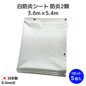 白防炎シート 5枚セット 白防炎シートは、国産シートを使用した防炎シートです。産業用ポリエステル基布に、特別設計の塩化ビニール樹脂をコーティングし、防炎加工しております。 また防炎2類の規格をクリアしておりますので、工場内