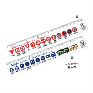 ■商品紹介:(商品はお取り寄せとなりますのでご注意ください!)景品 記念品 粗品 ノベルティ 名入れ 御挨拶 ご挨拶 用品としてどうぞ! 再生樹脂を100%使用したエコマーク認定の20cm定規に両面22種類の交通標識をプリント。お子様の交通