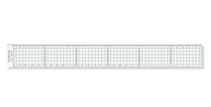 カッターによるイラストボードや板紙、PPCなどの紙素材のカットに適した定規。鮮やかな鏡面仕上げのアクリルに、細めのラインと、上下両方にある寸法表示で見やすくなっています。