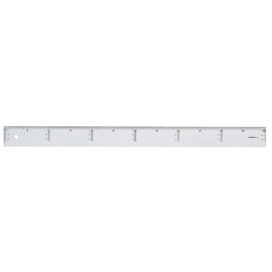 ハイコントラストで視認性の良い定規。コントラストが強いため文字とメモリの視認性が高い。5cmごとの大きな数字で視認性が良い。矢印付きメモリなので線を引くときに読み取りやすくなっています。