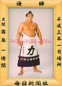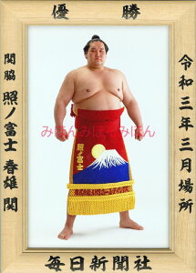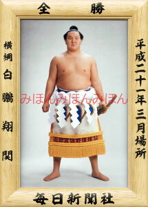 【毎日新聞社・大相撲優勝ミニ額について】 大相撲優勝ミニ額は、両国国技館に掲揚されている幕内優勝力士を顕彰する額(畳5枚分)をそのまま小さくした、毎日新聞社のオリジナル商品です(縦32cm、横23cm)...