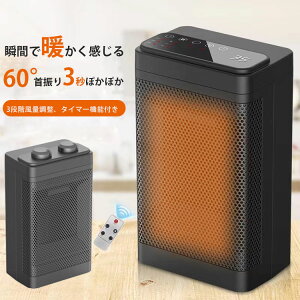 セラミックヒーター 電気ファンヒーター 小型 ヒーター 速暖 省エネ 暖房器具 転倒自動OFF リモコン付き タイマー付き 1200w 足元ヒーター 卓上ヒーター 電気ストーブ 静音 小型ヒーター PTC...
