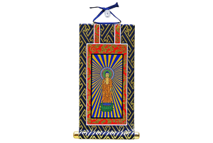 真宗大谷派の脇仏、十字名号をあらわした、はせがわオリジナルデザインの掛け軸です。 十字名号は阿弥陀如来の徳を讃える名号であり、お仏壇の上段向かって右側に掛けておまつりします。シルクスクリーンの鮮やかな本紙(絵像部分)に...