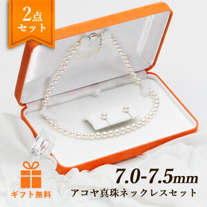 ナチュラルホワイトカラーの初めてでも安心な7.0mmアコヤ真珠のパールネックレスと、K14WG 7.5mmイヤリングまたはピアスの2点セット。【このパールネックレスの品質】色=ナチュラルホワイト 形=ラウンド...