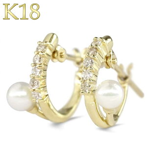 【送料無料】【代引手数料無料】【品質保証書】 ◆華やかに‥スイング♪エレガント フープピアス ☆大きくカーブを描くラインが美しい K18ゴールドのアメリカンフープピアス。 艶やかな淡水パールを添えて、エレガントなデザインに仕上