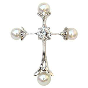 ブローチ 真珠 パール クロス 十字架 あこや本真珠 あこや真珠の魅力は上品かつ優しさのある輝きです。 色は日本人の 肌になじみやすいホワイト系です。十字架モチーフに4粒のパールと キュービックジルコニア9石が輝きます...