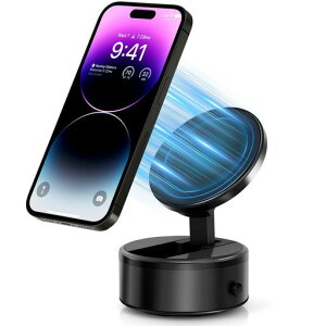 【1秒装着!真空吸盤】最新の真空吸着式とMagSafeを組み合わせた次世代車載スマホスタンドです。真空の力を利用して、滑らかな壁などの平らな面に簡単に貼り付けることができます。吸着力が強く、耐荷重5k...