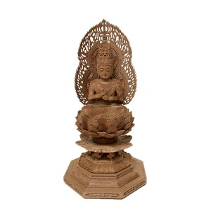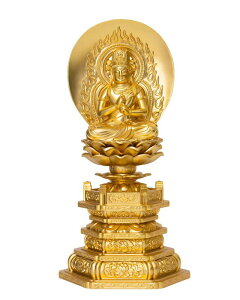 真言宗のご本尊である大日如来です。繊細で優雅なデザインが特徴の新八角台座。専用の増し台を利用して高さを調整することが可能であるため、上置き・直置きのどちらのタイプの仏壇に合わせていただけます。ツゲは経年変化によって年