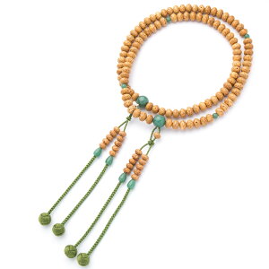 栴檀の明るく優しい木目に、緑の濃淡が美しい独山玉が組み合わさった事で見た目にも高級感溢れる念珠に仕上がっております。 一生ものの念珠としてお持ち頂けます。 【石の効力】 独山玉…精神面のバランスを保って感情を安定させ...