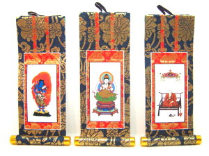 巾11.5cm×縦25cm 掛軸の祭り方、 一般的には木彫りのご本尊と掛軸の3枚セットは一番望ましいですが、 地域によって、木彫りのご本尊と脇軸の2枚セット、あるいは、掛軸3枚、...