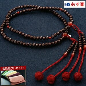 5mm ツユ 瑪瑙(めのう) 高さ8mm 房 くみひも梵天房(正絹) エンジ色 箱 桐箱入り 宗派 真言宗 ツヤのある紫檀と色鮮やかな瑪瑙(め...