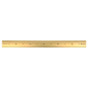 真ちゅうの竹尺 30cm 見る人を、なつかしい気持ちにさせる竹尺。 竹尺の特長は縦横どちらから見ても読むことができる、「星」とよばれる模様です。その星や目盛りを、真ちゅうにレーザー刻印しました。色褪せにくく、はっきりと読むこと