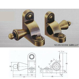 階段装飾パイプのフットサル受です。 特長 銅古美仕上げ サル受+義星一体物 2個1組(左片・右片各1ヶ) 真鍮製(木ネジ付) ※カーペットが厚い場合サル受けが使用できない場合があります。その際、補助金物(アジャスタ