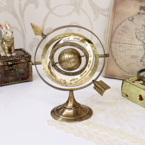 アンティーク仕上げのお洒落な天球儀。 真鍮製でオールド感のある仕上がりですので、置くだけで素敵なインテリアになります。 円形部分は様々な方向に角度を変えることができます。 お部屋の雰囲気作りやショップのディスプレイなどに