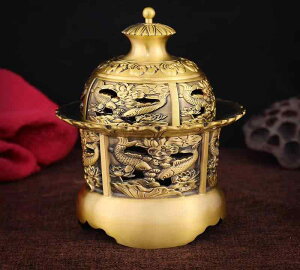 ・素材: 黄銅・製法: ロストワックス鋳造・品名: 双龍香炉・スタイル: 中式・用途: 宗教用品