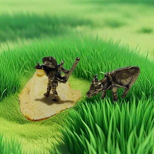 ・カラー: 背耙人、耕田黄牛・素材: 合金メッキ銅・加工方法: 半手作業半機械