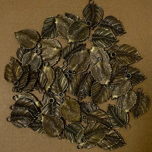 葉っぱ型金属チャーム 50個セット|インテリア・置物用真鍮カラーリーフチャーム|ヴィンテージ風デコレーション素材 (リーフ) アンティーク調キーデザイン: 真鍮カラーで仕上げた、クラシックでヴィンテージ感たっぷりのチ