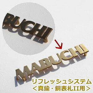 リフレッシュシステム対象商品 当社でご購入頂いた真鍮表札・銅表札IIのみ ※他社様の表札は対象外となります。 ■内容 表札表面の「ヘアライン加工のし直し」又は、「再塗装」 ※真鍮表札の場合は「マリーイエローゴールド塗装」...