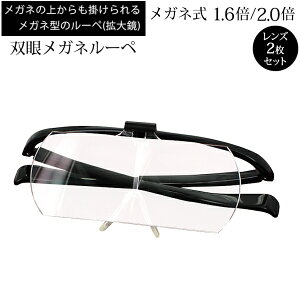 メガネの感覚そのままで、両眼で見ることができる便利で見やすい高性能ルーペ!レイズ倍率1.6倍と2倍の2枚レンズセットのお買い得版!●メガネをかけた上にさらにこのルーペを掛けることができます。●両手が使えるので、細かい作業に