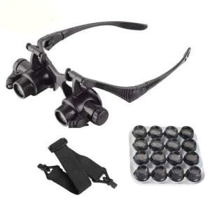 ◆商品名:ライト付 メガネ型ルーペ 眼鏡型拡大鏡 倍率2.5/4/6/8/10/15/20/25倍 レンズ交換式 両手が使える ヘッドバンド付 軽量設計 跳ね上げ式 ツインレンズ拡大鏡 修理 工作 彫刻...