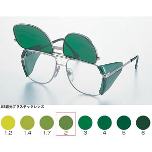 複式レンズを採用(外:遮光レンズ、内:透明レンズ)し、遮光メガネ以外に保護メガネとしても使用できます。 UVカット○ ツル調整 テンプルカラー ノーズパッド フレーム色ブラウン レンズ色グリーン 角度調整 高さ(mm)50 遮光度#4...