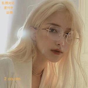 メガネ メガネ度付き 度あり 近視 乱視 度なし ふちなし リムレス 眼鏡 クラッシック お洒落デザイン 学生 s