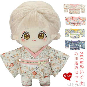 20cmぬいぐるみ用浴衣セット。素敵な振袖と帯の2点セット、日本らしい着物の姿が美しい、人形の着せ替えに最適。フリルや立体リボンなどディテールにこだわった仕上がり。程よいぬけ感のある、シンプルで上品なデザインが魅力...