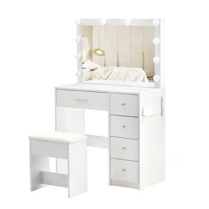 【美肌を引き出すLEDミラー】鏡で360度全方位にメイクやヘアセットをチェックでき、LEDライトで細部まで明るく照らします。明るさは10段階、色温は3種類から選べ、シーンや時間帯に合わせて理想的な光を作れます。 【広々デスク多用途】汚