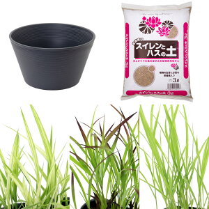 ビオトープ感覚で稲を育てよう!自由研究にもオススメ!イネトープ 稲苗栽培セット おまかせ稲苗3種+睡蓮鉢(グレー)+固形肥料+用土特徴イネを育てるビオトープやイネトープを手軽に楽しむことのできるセットです...