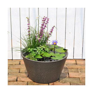 ハスは水辺植物特有の臭いがする為、屋外で開封する事をお勧めします。プロが考えた睡蓮鉢で育てる!プロが考えた睡蓮鉢で育てる(グリーン) 熱帯性スイレンとひめだかのセット 紫 説明書付特長●おしゃれな睡蓮鉢で