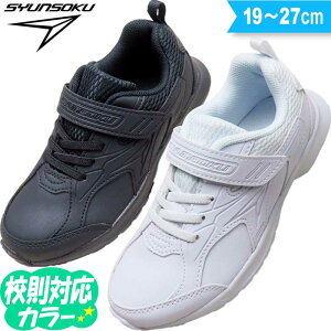 瞬足(シュンソク) スニーカー JJ-195。校則対応カラーの瞬足スクールモデル。脱ぎ履きラクラクのゴム紐×面ファスナー仕様で、通気性の良いメッシュアッパーが足ムレを防ぎます。軽量で長時間の歩行も快適...