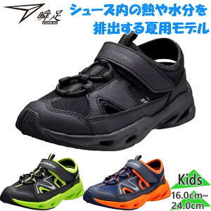 [アキレス] 瞬足 足育 スニーカー キッズ 日本製 JC-951 黒 青 赤 2E 軽量 マジックテープ 運動靴 男の子 女の子 子供 ブラック 17.0cm