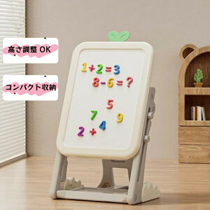 【お部屋に馴染むデザイン】ホワイトベースのおしゃれデザインが特徴の子供用のホワイトボードです。出しっぱなしでも違和感がありません。折り畳み可能なので、使わない時は収納できます。 【お子様の想像力を引き出す】マグネット仕