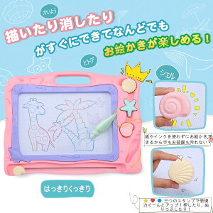 【大きなサイズ】本体サイズは40.3×31.2×4cm、描く部分は27.5×18.3cmです。広々としたスペースで思う存分描くことができます。 【4色カラー】描く場所により赤、緑、黄色、青のカラフルな線が出てきます。スタンプを使えばさ...