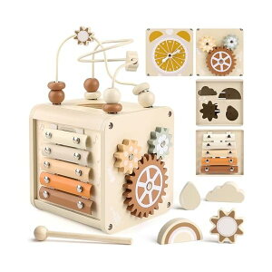 1モンテッソーリ玩具:この知育玩具は、形の並べ替え、時計の学習、歯車の回転、木琴遊び、ビーズ迷路など、5種類の遊びができる。 赤ちゃん 玩具 としても最適。 0 1 2 3 歳の男の子の女の子のおもちゃ。br