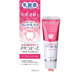 アバンビーズ 知覚過敏症状ケア おすすめポイント 生きた乳酸菌WB2000(清掃剤)は、口臭原因菌の増殖を抑制するとともにむし歯などの菌も除去します。 なめらかクリームペーストで泡立ちを抑え、みがいた...