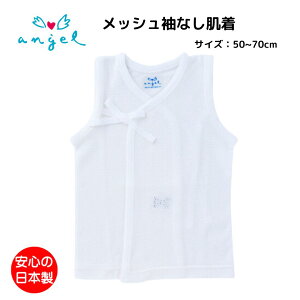 日本製 サイズ:50→50-60p(3-6kg)・60→60-70p(6-9kg) ☆ メッシュ 天竺 素材の ミキハウス ノースリーブ 短肌着 です。暑い 夏 に気持ちいい、通気性に優れた肌触りのよい肌着です...
