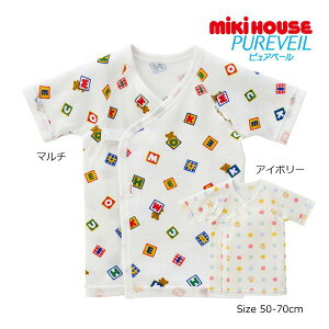 日本製 サイズ:50→50-60p(3-6kg)・60→60-70p(6-9kg) 二枚層でふんわり ニットガーゼ 素材の ミキハウス 短肌着 です。お着替えをより簡単にできるホック仕様を採用した 新生児...