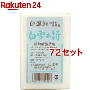 お店TOP>日用品>掃除用品>住居用 掃除用品>固形石鹸>白雪の詩 (2個入×72セット(1個180g))【白雪の詩の商品詳細】●パームバージン油だけを原料に中和法で作った純粋な石鹸分だけを機械練りにて無添加で仕上げた名前のとおりの真っ白な